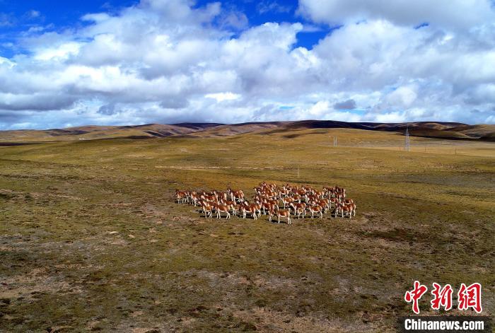 圖為三江源國(guó)家公園黃河源園區(qū)內(nèi)的藏野驢群?!‖敹嗫h委宣傳部 供圖