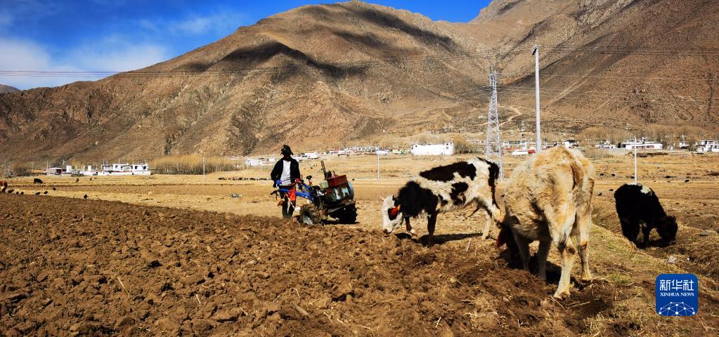 3月26日,堆龍德慶區(qū)古榮鎮(zhèn)加多村的普桑在地里勞作(手機照片)。普桑今年28歲,家里有耕地30多畝。新華社記者 沈虹冰 攝