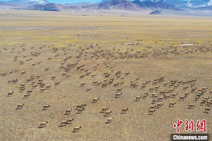 3月27日,航拍超大規(guī)模的藏羚羊群?!∷骼嗜是?攝