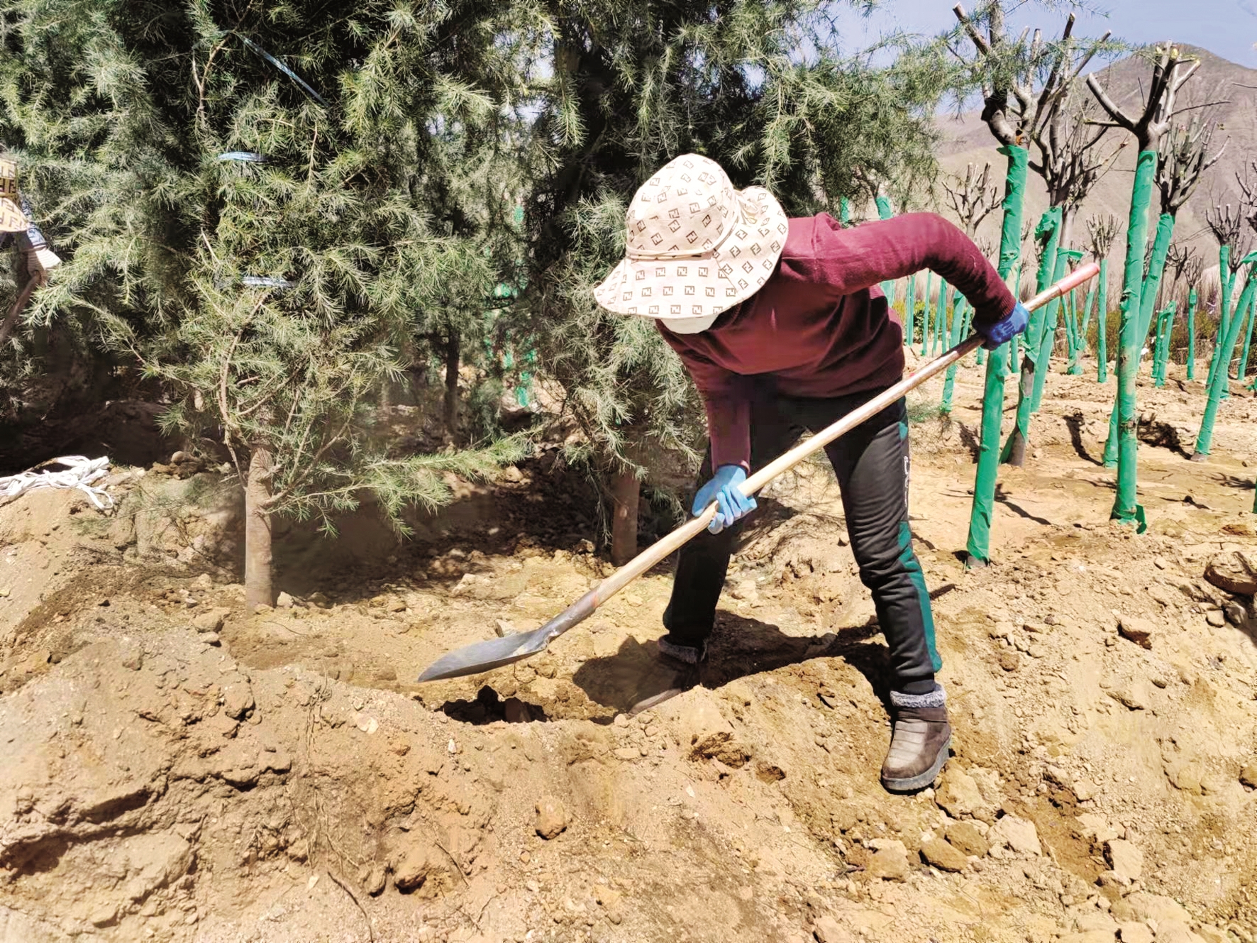 當(dāng)前拉薩天氣晴好,氣溫回升,正是育苗植樹的好時節(jié)。扶正樹苗、填土壓實(shí)……在拉薩市曲水縣茶巴朗村水土保持生態(tài)園里,縣水利局組織附近村民移植培育松樹、蘋果樹、桃樹等林木,大家三五成群忙得不亦樂乎。