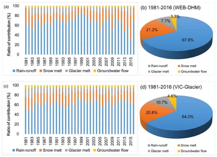 王磊表示,依托監(jiān)測(cè)網(wǎng)絡(luò)和其他多源數(shù)據(jù),研究團(tuán)隊(duì)生成了1981-2019年這38年內(nèi)雅魯藏布江流域高時(shí)空分辨率降水?dāng)?shù)據(jù),在此基礎(chǔ)上進(jìn)一步通過(guò)對(duì)比、綜合主流冰凍圈水文模型的徑流組分模擬,研究得出的結(jié)果顯示,雅魯藏布江流域(奴下水文站以上)新的降雨、融雪、冰川融化和地下水補(bǔ)給分別占總徑流的66%、21%、9%和4%。