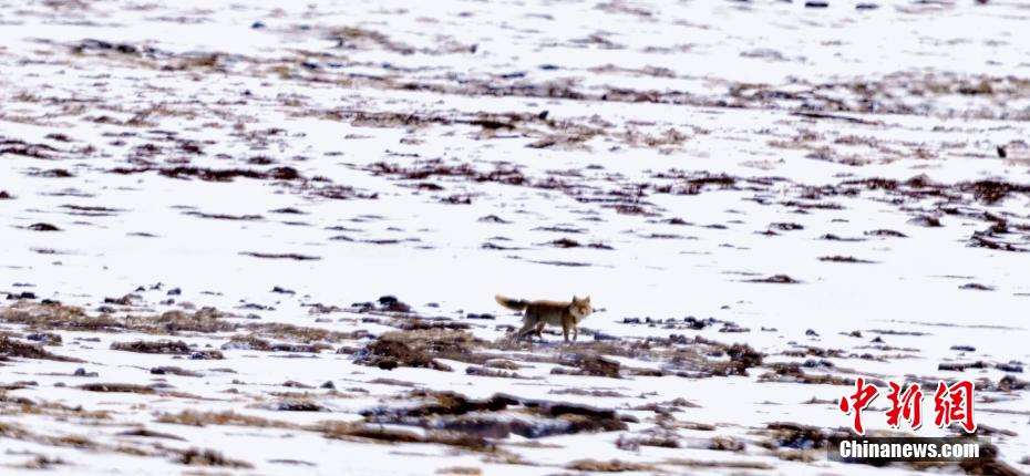黑頸鶴、藏原羚、斑頭雁、藏狐、巖羊等野生動物嬉戲、覓食、跳躍、奔跑……貌似夏天到了,它們也喜歡“組團”游玩,感受這高原的夏日活力。圖為藏狐在遠處回眸。 馬志原 攝