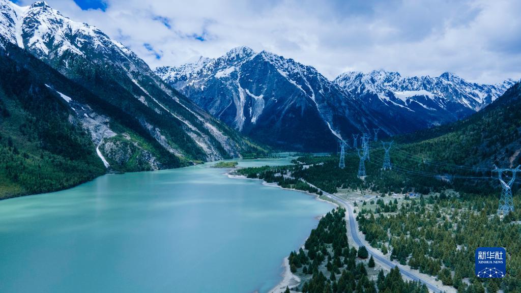 這是5月30日拍攝的然烏湖風(fēng)光(無人機(jī)照片)。新華社記者 范帆 攝
