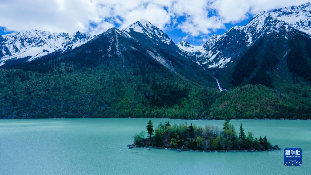 這是5月30日拍攝的然烏湖風(fēng)光(無人機(jī)照片)。新華社記者 陳尚才 攝