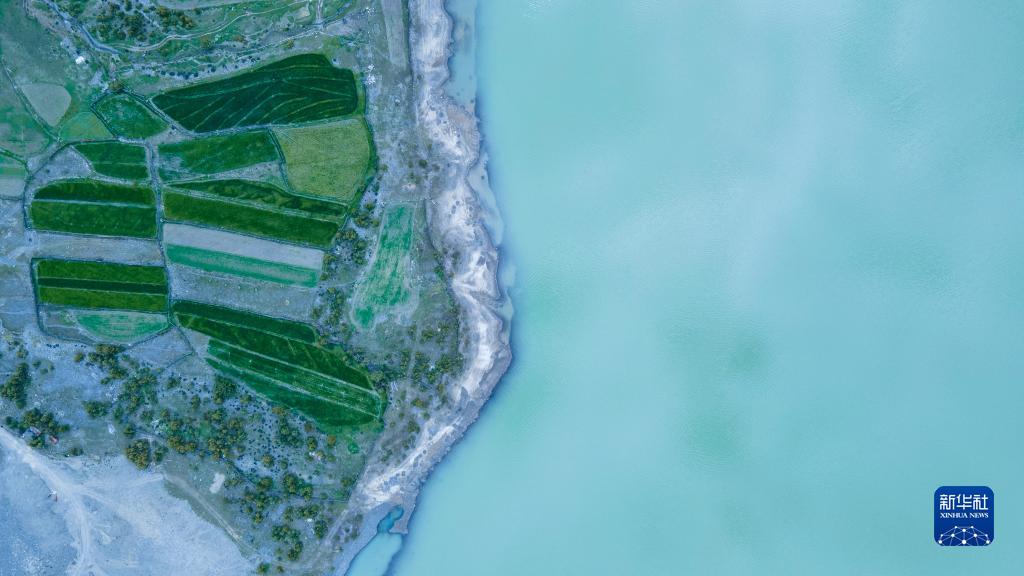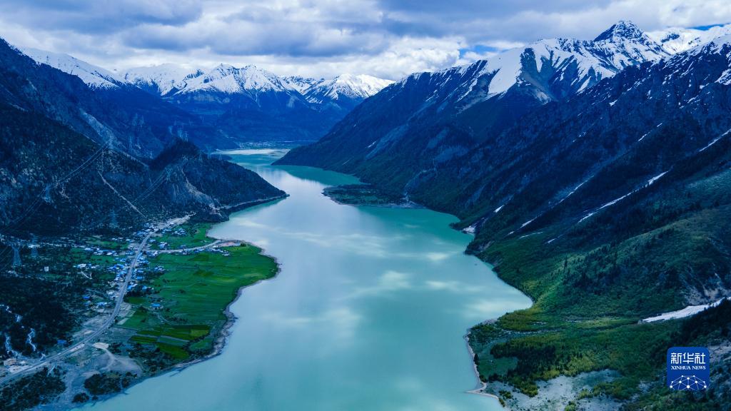 這是5月30日拍攝的然烏湖風(fēng)光(無人機(jī)照片)。新華社記者 周荻瀟 攝