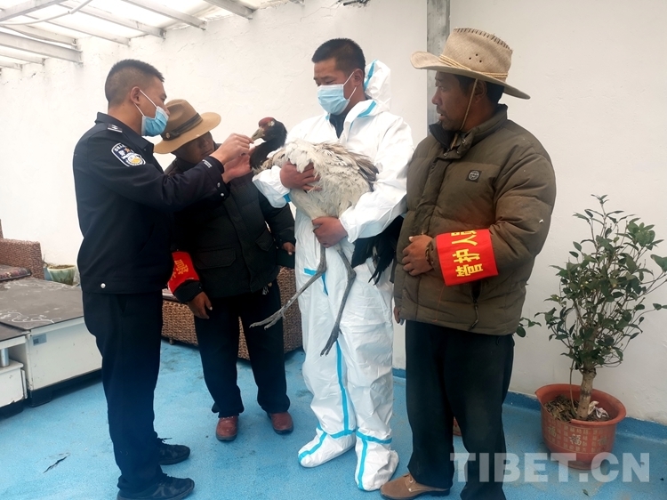 西藏阿里馬攸橋邊境檢查站救助國家一級保護(hù)動物丹頂鶴