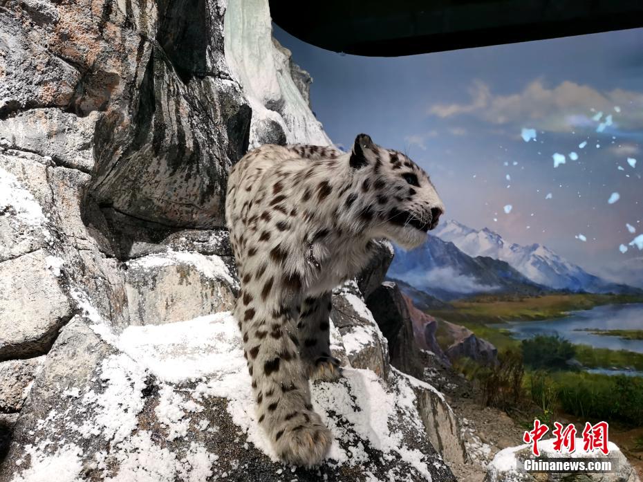 日前,中新網(wǎng)記者實(shí)地探訪即將落成的祁連山國家公園(青海片區(qū))生態(tài)科普館。正在進(jìn)入建設(shè)收尾階段的該館是祁連山國家公園青海片區(qū)唯一一個(gè)以國家公園為主題的自然類科普館,包含巍巍祁連、中國濕島、多彩生命、歷史使命、影院、文創(chuàng)教學(xué)區(qū)等六個(gè)展區(qū),充分展示祁連山國家公園自然生態(tài)系統(tǒng)、珍稀動(dòng)植物多樣性、生態(tài)文化等內(nèi)容。圖為“雪山之王”雪豹模型。 張?zhí)砀?攝