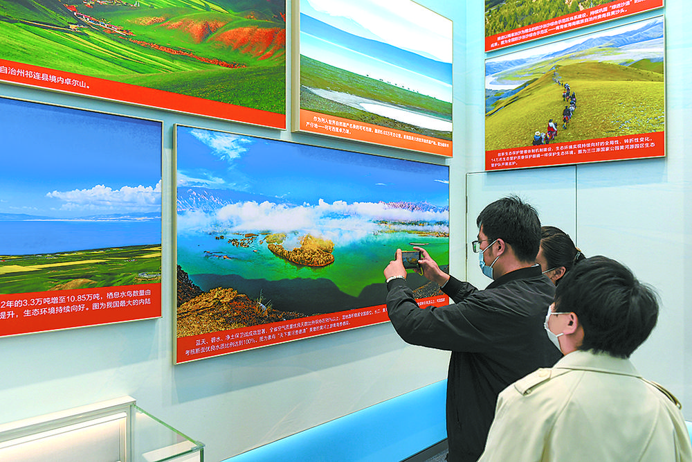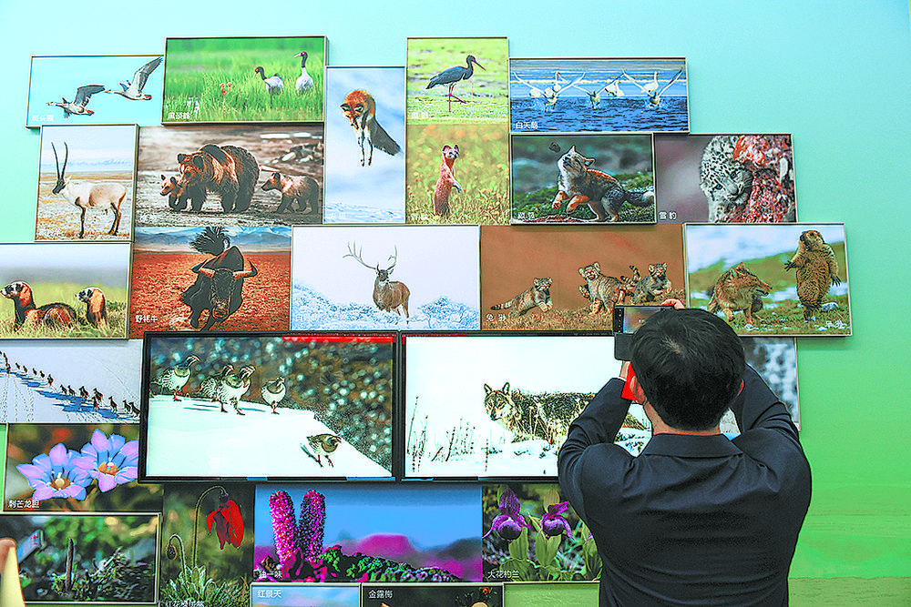雪豹、兔猻、黑頸鶴、馬麝、廣布紅門蘭、水母雪兔子、紅花綠絨蒿……青海特有的動植物照片墻吸引觀眾駐足,珍稀動物的生活智慧和罕見植物的生長歷程通過攝影師的鏡頭,向世界展示了青海生物多樣性保護(hù)取得的顯著成就。