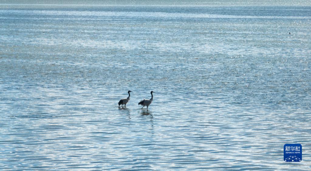 西藏:多慶湖邊的黑頸鶴