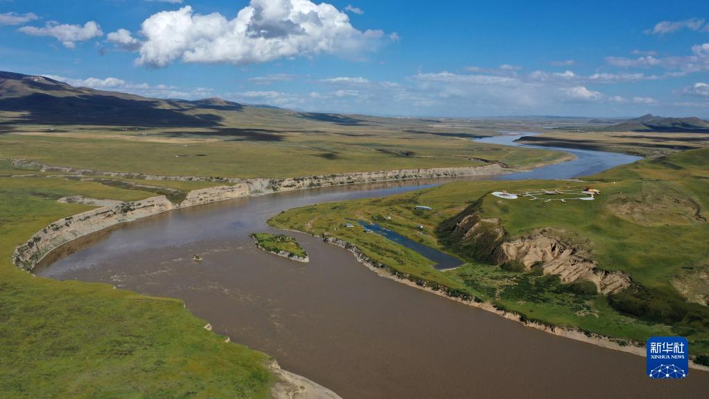 黃河流經(jīng)甘肅省甘南藏族自治州瑪曲縣境內(nèi)(2022年9月21日攝,無人機照片)。新華社記者 陳斌 攝