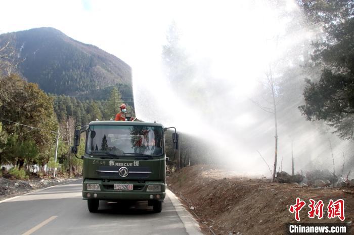 踏查中,中隊出動20人,編排成3個小組,攜帶地圖、指北針、無人機等勘察裝備,采取實地查看、詢問了解、研究分析等方式對植被含水量、可燃物載量、水源分布、地形地貌、植被類型、道路交通等情況進行勘察,及時掌握林情、社情等最新數(shù)據(jù)資料。同時,配合波密縣應急管理局、林草局等部門沿318國道沿線開展林下可燃物清理和灑水增濕作業(yè)。