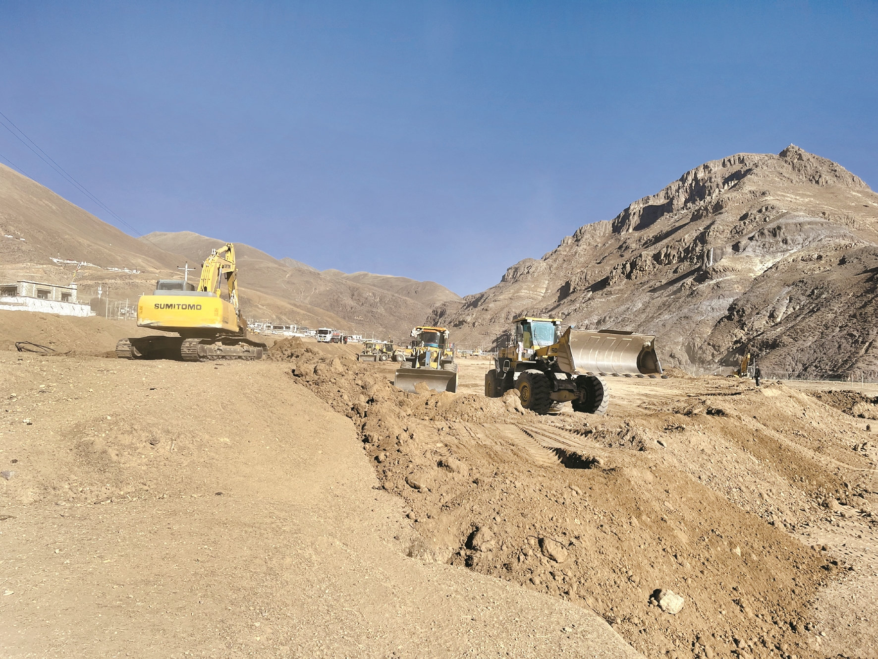 圖為堆龍德慶區(qū)德慶鎮(zhèn)邱桑村高標(biāo)準(zhǔn)農(nóng)田建設(shè)現(xiàn)場各種機(jī)械正在緊張作業(yè),到處呈現(xiàn)出一派繁忙景象。 拉薩融媒記者 莫瑞英攝