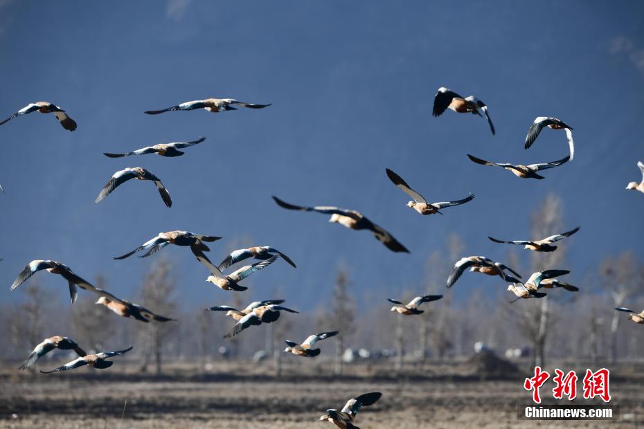 近年來,拉薩水系治理工程的實(shí)施,讓拉薩河周邊環(huán)境變得更好。每年10月中下旬,來拉薩越冬的候鳥不斷增多,在拉薩河畔處處都能看見斑頭雁、紅嘴鷗、黃麻鴨等鳥類的身影。據(jù)悉,目前,拉薩河城區(qū)段形成了3公里長(zhǎng)的湖面水城,水城面積達(dá)1258畝,平均水深2.5米,蓄水量約105萬立方米,不僅增加了空氣濕度、含氧量,完善了城市防洪體系,還提高了地下水位,鳥類種群數(shù)量增加。圖為一群黃麻鴨在拉薩河畔的農(nóng)田上飛翔。 貢嘎來松 攝