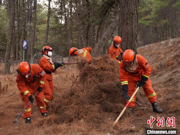 圖為森林消防員正在進(jìn)行林下可燃物清理。 巴宜區(qū)森林消防中隊(duì)供圖
