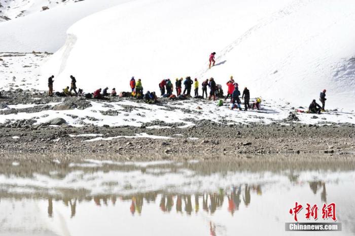 資料圖為登山愛好者在廓瓊崗日冰川進(jìn)行冰雪訓(xùn)練。 中新社記者 貢嘎來松 攝