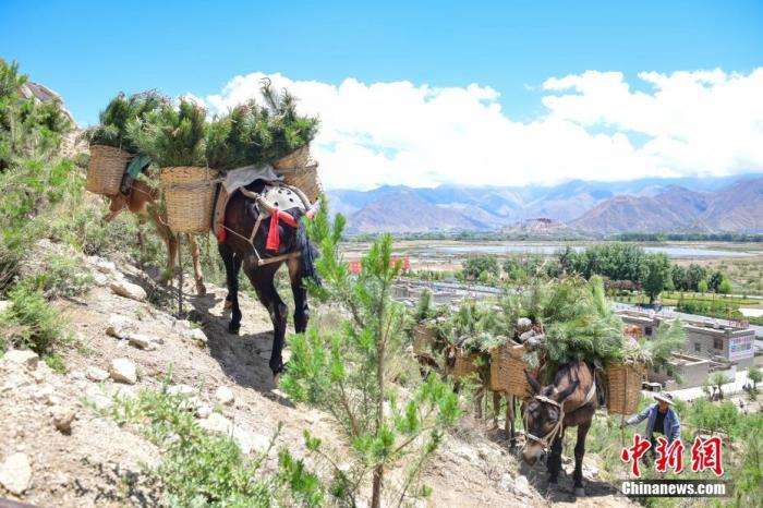 資料圖為拉薩河流域造林隊(duì)員運(yùn)送樟子松樹苗。 中新社記者 貢嘎來松 攝