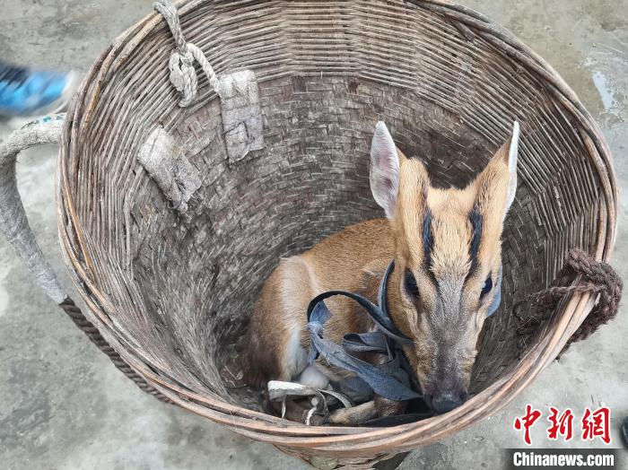 圖為被救的赤麂。 肖應(yīng)天 攝