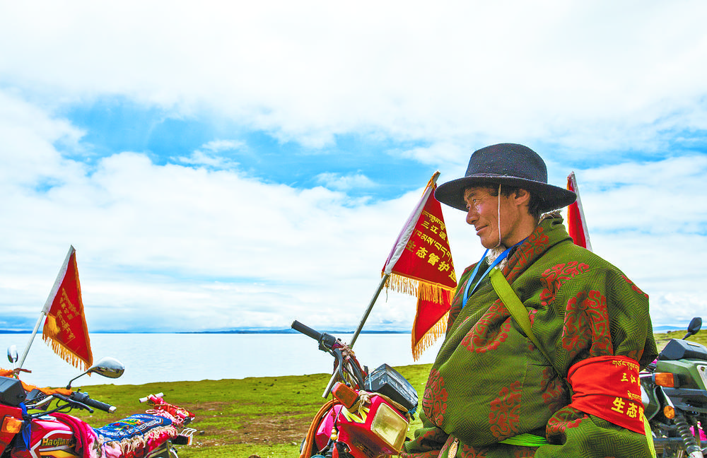 作為三江源國家公園的一名生態(tài)管護(hù)員,尼瑪扎西每天在放牧自家牛羊的同時(shí),也承擔(dān)撿拾垃圾、巡護(hù)湖泊草場、巡查和保護(hù)野生動(dòng)物等職責(zé)。