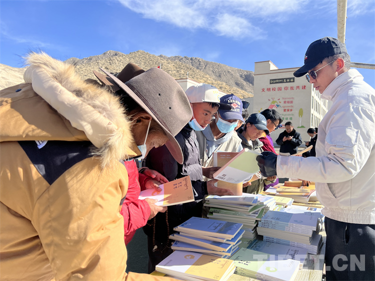 在送“書籍” 現(xiàn)場,《西藏文學》《西藏文藝》《邦錦梅朵》三個編輯部工作人員為現(xiàn)場群眾和當?shù)馗刹抠浰蜁?,當?shù)厝罕姾蛯W生們紛紛前來翻看尋找自己喜歡的書籍,大家人手幾本書?!拔移綍r喜歡閱讀藏文文學作品,這次要了兩本文學相關書籍拿回家閱讀”17歲的益西巴珍說。據(jù)了解,此次活動西藏文聯(lián)向熱愛閱讀的群眾和學生共贈送1500本(冊)文藝書籍和期刊。