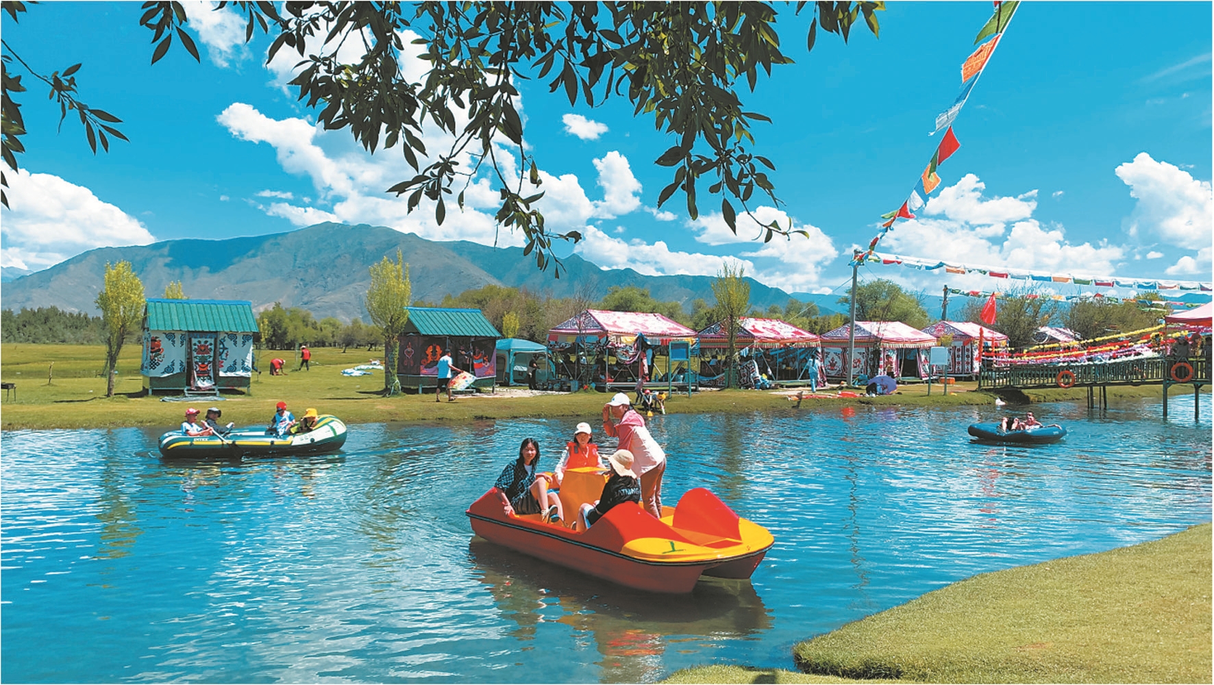 時下,正是“過林卡”的最好時節(jié),為了吸引客源、招攬生意,林卡經(jīng)營者不斷完善基礎(chǔ)設(shè)施,搭建漂亮的帳篷,提供特色服務(wù),滿足市民游客戲水、劃船、健身運動和特色美食等需求。