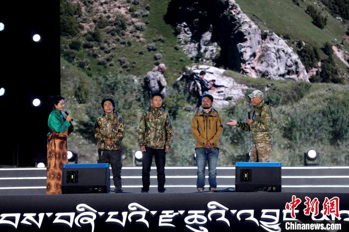 資料圖為紀(jì)錄片《雪豹和她的朋友們》導(dǎo)演奚志農(nóng)(右一)在雜多縣分享創(chuàng)作背后的故事。薛蒂 攝