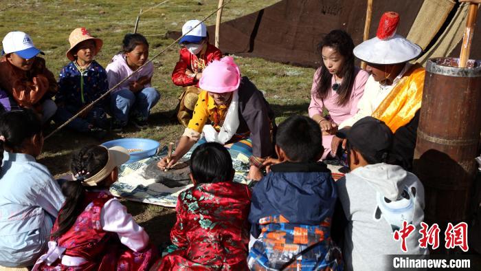 圖為青少年與牧民體驗(yàn)?zāi)ヴ佤?。拉薩市圖書(shū)館供圖