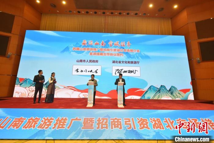 現(xiàn)場,山南市人民政府和湖北省文化和旅游廳進行客源援藏合作協(xié)議簽約,山南各縣區(qū)政府及機構(gòu)與8家企業(yè)就招商引資項目進行簽約。