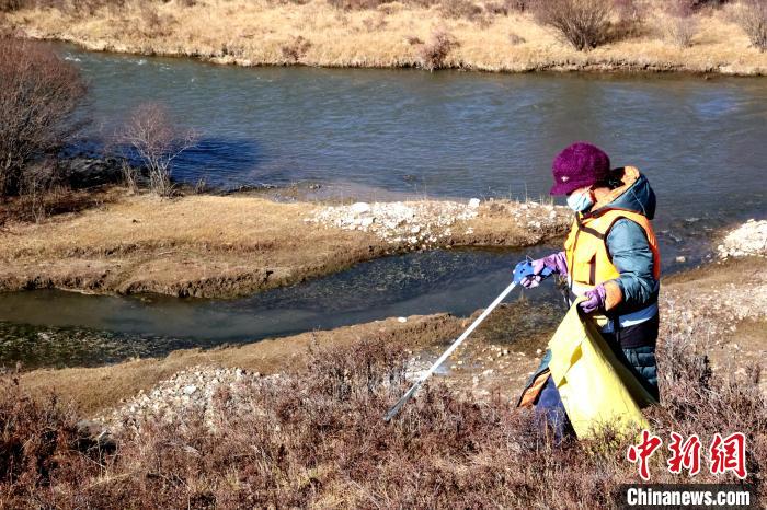 圖為管護(hù)員清理洮河沿線垃圾。薛蒂 攝