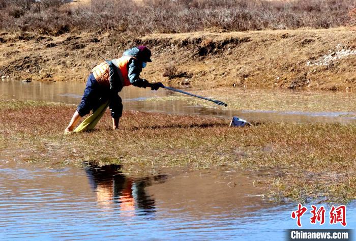 圖為管護(hù)員在清理濕地公園內(nèi)的垃圾。薛蒂 攝