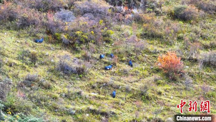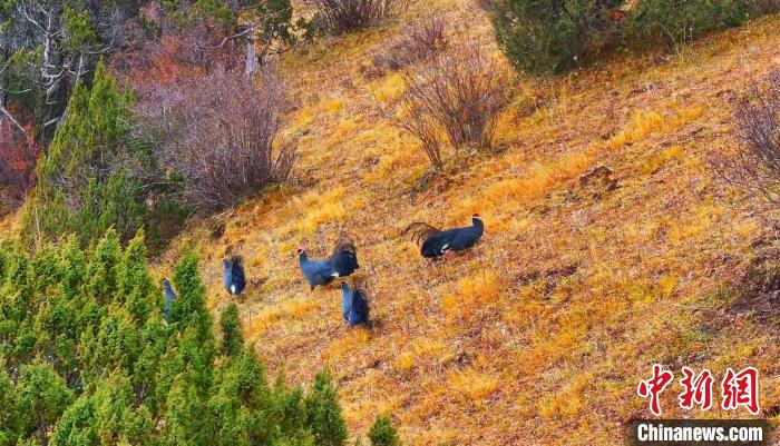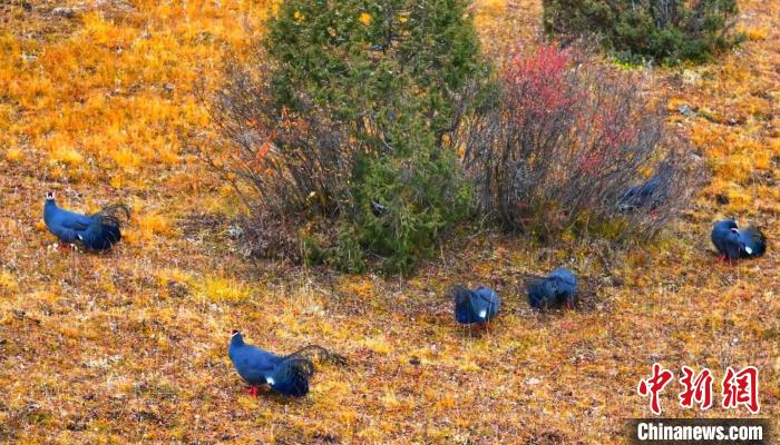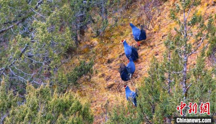日前,十多只國家二級重點保護野生動物藍馬雞現(xiàn)身長江源上游主要水源地青海省班瑪縣多柯河林區(qū),只見他們時而在叢林中穿梭,時而在地上覓食。