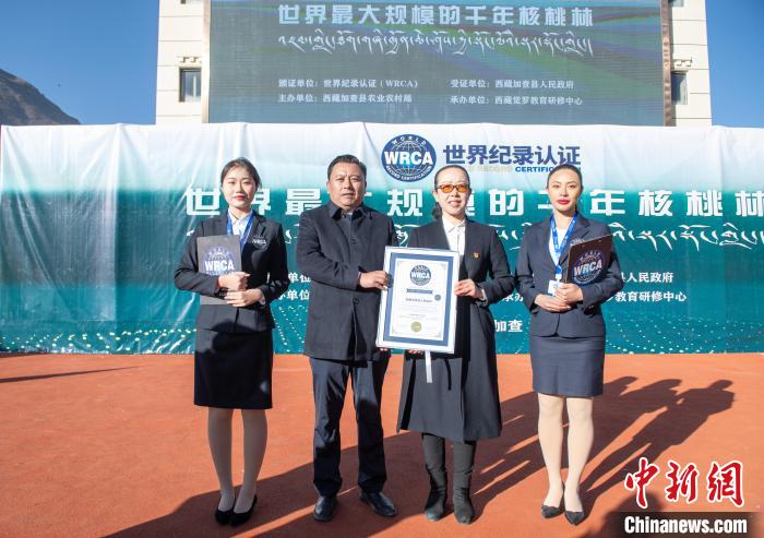 15日,經(jīng)世界紀(jì)錄認(rèn)證(WRCA)官方人員現(xiàn)場審核,西藏山南市加查縣被認(rèn)證為“世界最大規(guī)模的千年核桃林”。