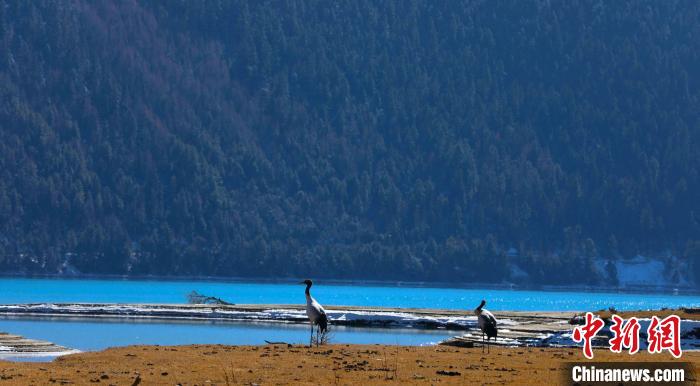 圖為西藏林芝市巴松措景區(qū)里的黑頸鶴。益西旦增 攝