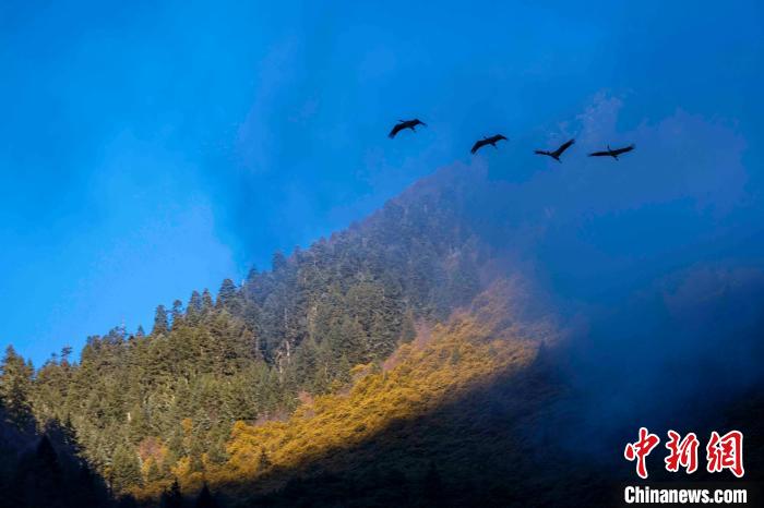 圖為西藏林芝市工布江達縣的黑頸鶴。益西旦增 攝