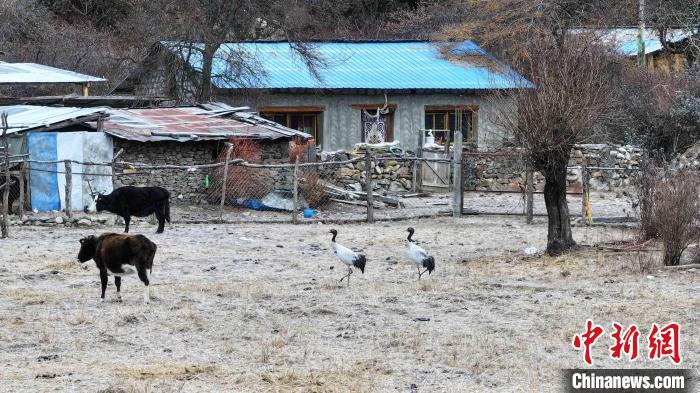 圖為西藏林芝市工布江達縣錯高村里的黑頸鶴。張寧 攝