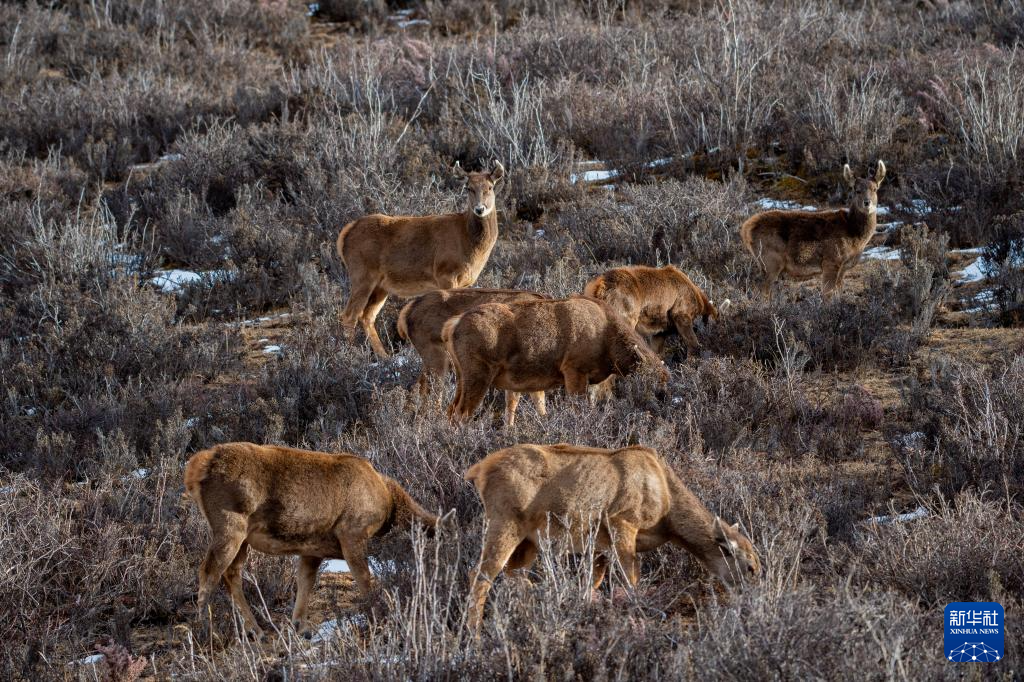 西藏山南市桑日西藏馬鹿縣級自然保護區(qū)內的西藏馬鹿(1月14日攝)。新華社記者 田金文 攝