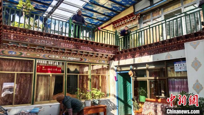 “樓上樓下都有陽(yáng)光,很暖和。”2月2日,西藏網(wǎng)絡(luò)媒體新春走基層活動(dòng)記者一行來(lái)到山南市瓊結(jié)縣昌嘎村,此時(shí)該村四組村民多吉在家里的二樓陽(yáng)光房?jī)?nèi)準(zhǔn)備過(guò)年用的經(jīng)幡,他的老伴則在一樓庭院內(nèi)整理衣物,午后的陽(yáng)光透過(guò)玻璃窗落在沙發(fā)上,坐在這里感覺(jué)不到冬的寒意,郁郁蔥蔥的綠植讓這所溫馨的居所生機(jī)勃勃。