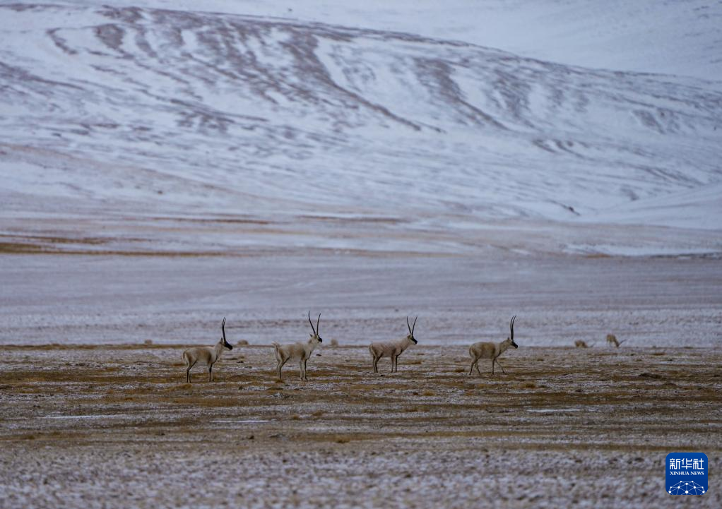 生活在三江源國家公園唐北片區(qū)的藏羚羊(2024年2月1日攝)。新華社記者 儲國強(qiáng) 攝