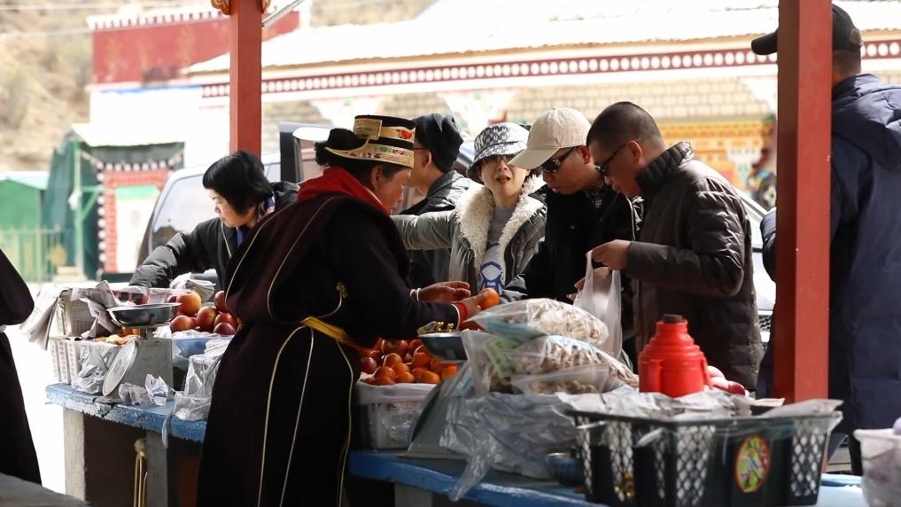 近年來,隨著政府支持力度的不斷加大和林芝旅游的日漸火爆,羌渡崗村的村民們?cè)诩议T口吃上了“旅游飯”。村民們操著一口流利的普通話在水果攤前招攬生意,游人們也在村民的吆喝間購(gòu)入新鮮的水果。