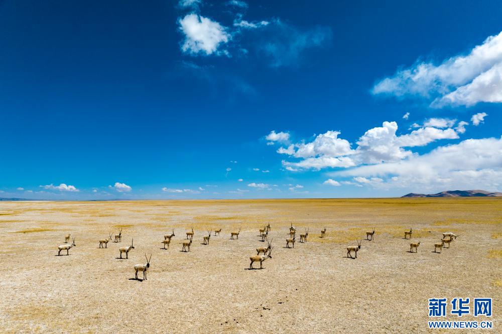 4月14日,在色林錯國家級自然保護(hù)區(qū)拍攝的藏羚羊。新華網(wǎng) 旦增努布 攝