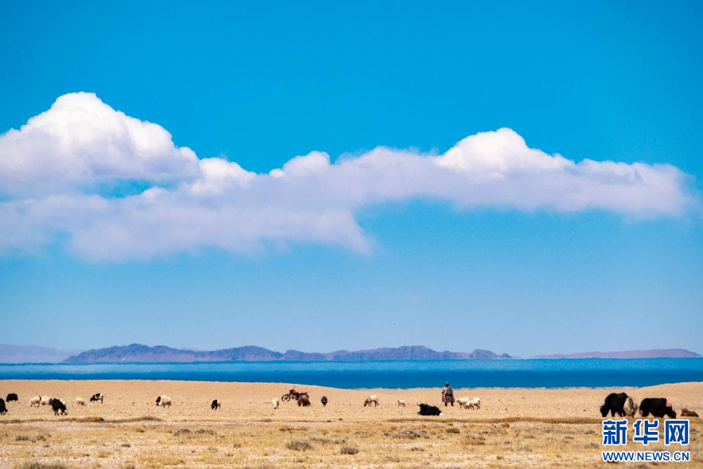 4月14日,在色林錯國家級自然保護(hù)區(qū)拍攝的放牧人。新華網(wǎng) 旦增努布 攝