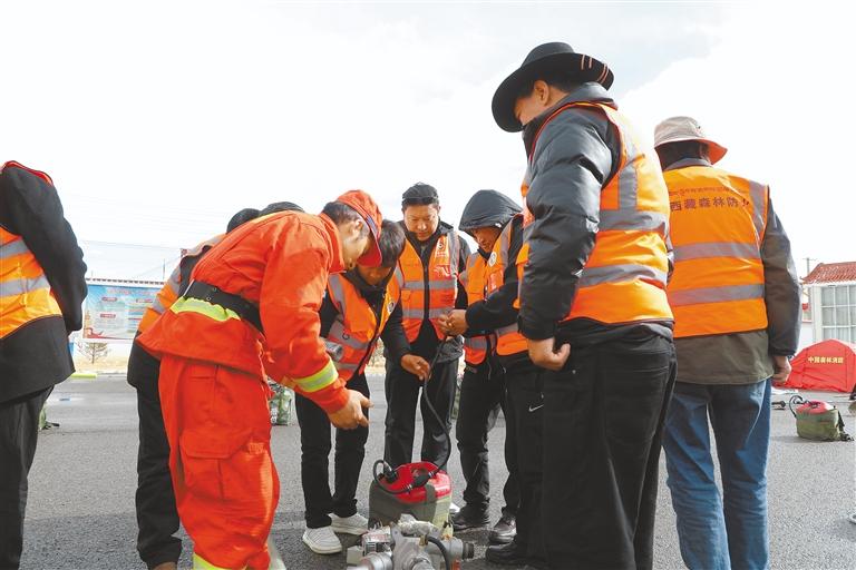消防員向管護員培訓(xùn)防滅火設(shè)備的使用和維護知識。通訊員 甄小龍 次仁多杰 攝