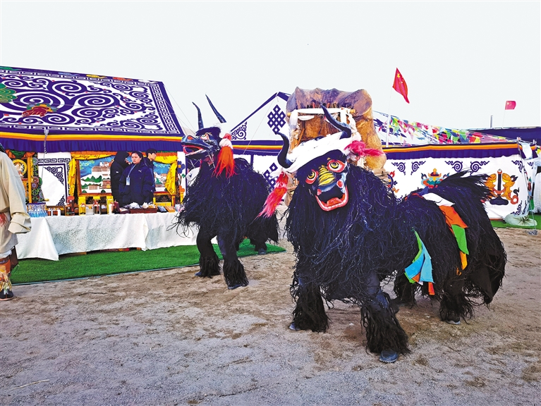 由300名演員將象征平安、吉祥的馬、牦牛、牛角、五彩哈達等元素融入表演全過程,藝術地展現獨有的開湖祈福場景。