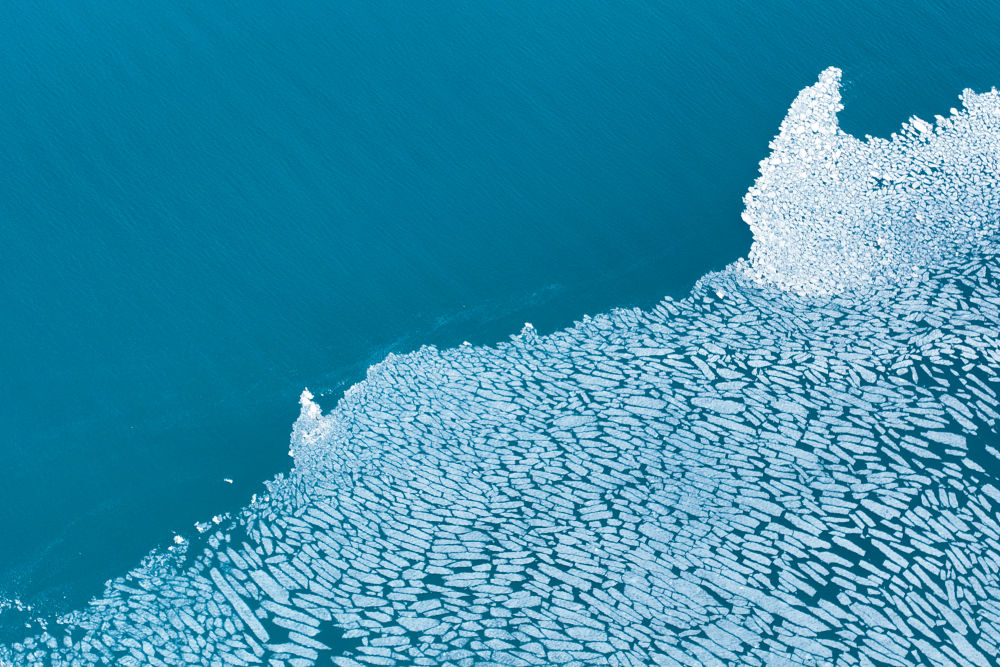 這是2024年4月11日在青海湖拍攝的部分未融化的湖冰(無人機(jī)照片)。新華社記者 張龍 攝