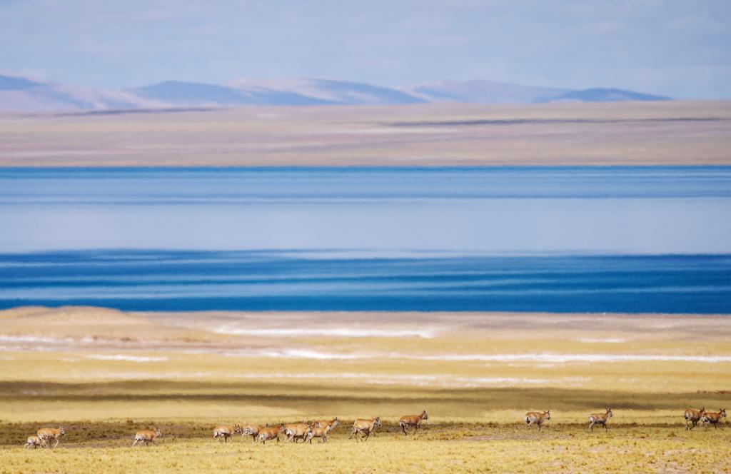 6月15日清晨在羌塘國家級(jí)自然保護(hù)區(qū)拍攝的遷徙中的母藏羚羊。