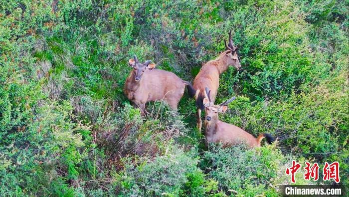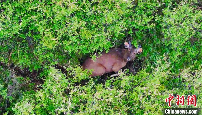 圖為無人機拍攝水鹿在叢林里活動。 班瑪縣融媒體中心 供圖