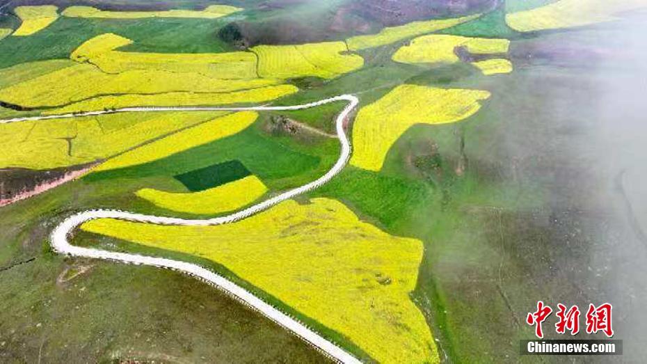 進入7月,因氣候等原因,青海高原的油菜花迎來年度最佳觀賞期。16日,攝影師在青海省海東市化隆縣二塘鄉(xiāng),航拍萬畝油菜花海。此間油菜花海,如金色地毯,與周邊青稞等農(nóng)作物形成鮮明對比。圖為山間的油菜花海。