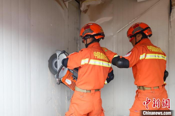 圖為昌都森林消防進行地震救援破拆訓練。姚天銳 攝