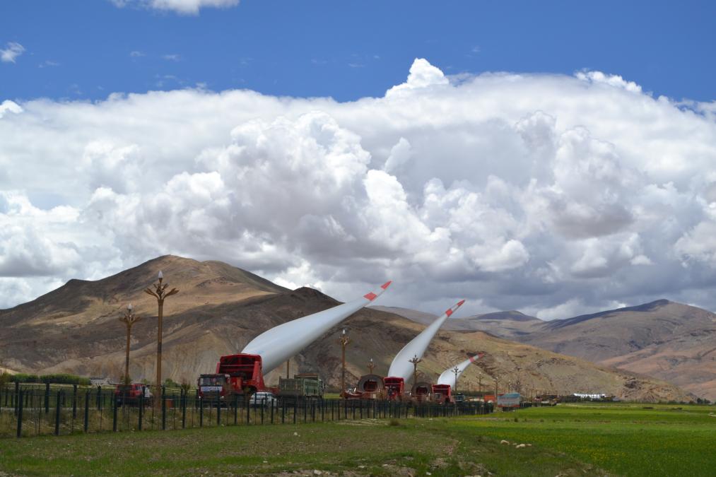風(fēng)電上高原,并不是把機(jī)組搬上高原就行,面對海拔、氣候等全新挑戰(zhàn),需要大量創(chuàng)新研究,甚至連風(fēng)電葉片,都必須定制特殊寬度。
