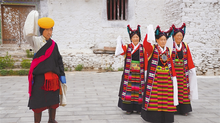 “如今,這支隊(duì)伍已發(fā)展到20多名成員,都是當(dāng)?shù)厝罕姟K囆g(shù)隊(duì)經(jīng)常受邀參加各種大小晚會(huì)、重要節(jié)日演出和赴區(qū)內(nèi)外非遺展演等,其影響力和傳播力不斷提升,特別是甲瑪諧欽《和親路》受到廣泛歡迎?!奔赚斷l(xiāng)工作人員德吉卓嘎說。