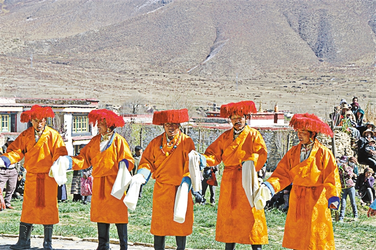 甲瑪鄉(xiāng)諧欽隊(duì)在墨竹工卡縣甲瑪松贊文化藝術(shù)節(jié)上表演諧欽。